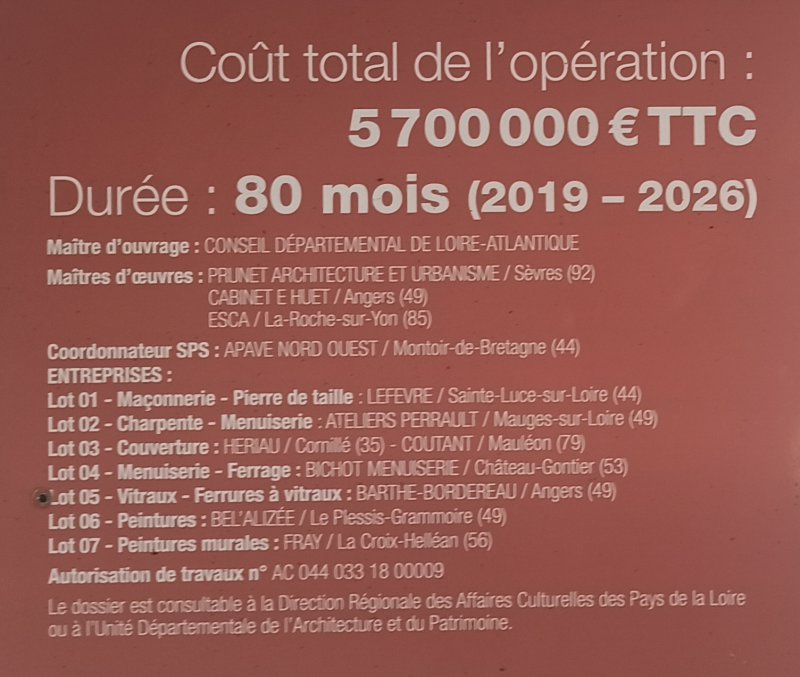 La maitrise d'oeuvre est assurée par Pascal Prunet, architecte en chef des monuments historiques